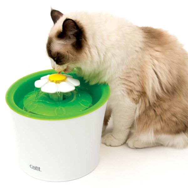 - A diferencia de los platos, la Flower Fountain ofrece solamente agua fresca en la superficie