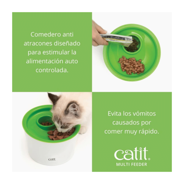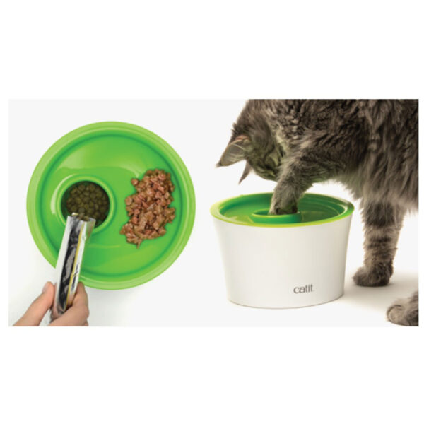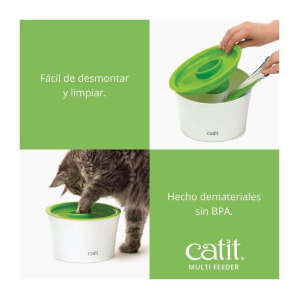 - Superficie poco profunda para evitar el estrés de los bigotes, espacio de almacenamiento interno para servir la siguiente, ración de comida de forma rápida y fácil.