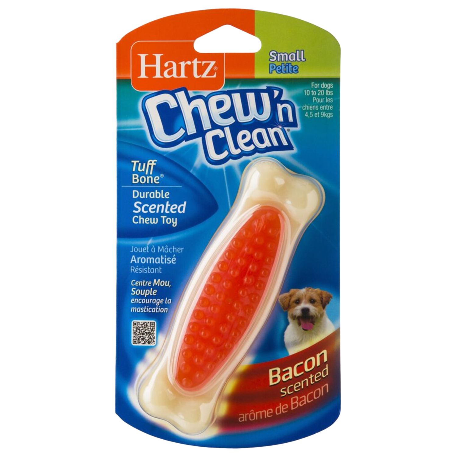 El hueso Chew N Clean es un juguete duro y masticable que está perfumado y no se destruirá después del primer día.