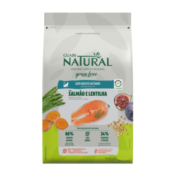 Guabi Natural Gato Adulto Castrado Sabor Salmón y Lentejas 1.5 Kg