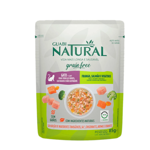 Guabi Natural Grain Free Para Gato Sabor A Pollo, Salmón Y Vegetales Sachet 85 Gr